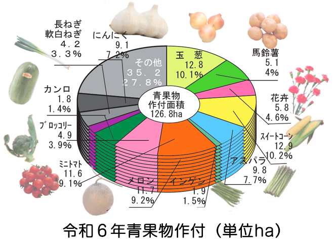 国道275号線と学園都市線が穀倉地帯を縦断する管下は、水稲を中心にミニトマト、メロン、インゲン、スイートコーン、ブロッコリー、長ねぎ、アスパラ、スイカ、花き、玉ねぎ、馬鈴薯、にんにく、ワイン用のブドウなど農産物は多岐に亘って生産されております。