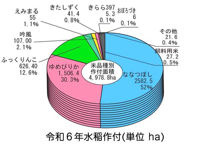 特に水稲は作付面積が約5013.08ha(R5)と広大で、また中空知米ブランド「北海道の中心蔵」の主産地としても確立されています。